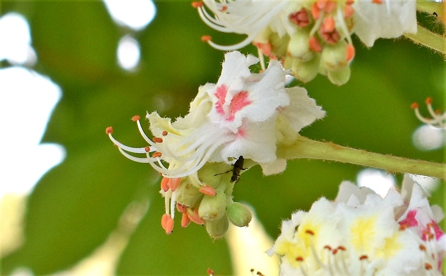 Ogni pianta ha il suo parassita, nel caso dell’Ippocastano si tratta di Cameraria ohridella, un lepidottero le cui larve si nutrono scavando gallerie (mine) all’interno delle foglie. L’arrivo in Italia di questo insetto è sorprendentemente recente, si è diffuso, infatti, nelle regioni centro settentrionali negli anni novanta del Novecento.