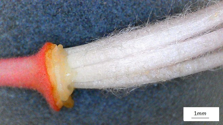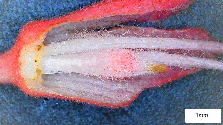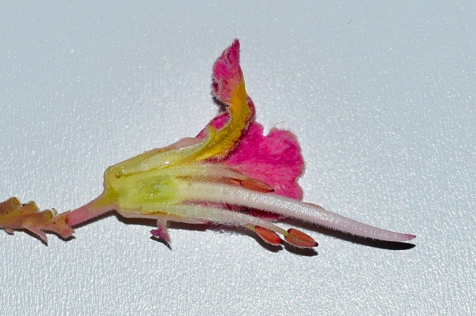 Ippocastano rosa in un giardino privato di Via Fusinato, le dimensioni ridotte rispetto all’ippocastano comune lo rendono adatto a spazi più contenutiUna particolarità che aiuta l’identificazione al di fuori del periodo di fioritura è la forma delle foglie che sembrano quasi stropicciate.Per il resto molto simili a quelle dell’ippocastano comune.Gemma grande e massiccia. Contiene tutto: fiori e foglie.Infiorescenza a candelabro simile in tutto a quella dell’ippocastano comune e anche i fiori hanno la stessa forma, vale la pena tornare al post di quello per un approfondimento.Cominciano a sbocciare dal basso (infiorescenza racemosa = si prolunga indefinitamente verso la cima)Capita di incontrare fiori solo femminili, nella foto il lungo stilo e aborti di stamiSezione longitudinale, si riconosce l’ovario superoSi è tolta la corolla per mostrare la base degli stamiLunghi filamenti bianco diafani e antere aranciate, l’attaccatura è dorsale e si aprono longitudinalmente Fiore maschile con pistillo abortito.Frutto in formazione, la superficie dell’ovario è pelosaSezione trasversale dell’ovario.Il frutto a differenza dell’ippocastano comune non ha spine.O meglio solo accennate. Superficie butterata e colorata. A sinistra l’accenno di spina di cui si dicevaIncontro ravvicinato.Il frutto è una capsula coriacea che a maturità secca e si apre lasciando cadere un seme con un ampio ilo (il punto di attacca del seme alla parete interna dell’ovario (placenta)). A destra nella foto l’ampia e articolata regione più chiara.Il seme è ricoperto da un tegumento coriaceo. Rimosso il quale appare una superficie un po’ mossa. Corteccia grigio rossastra a squame tondeggianti.
