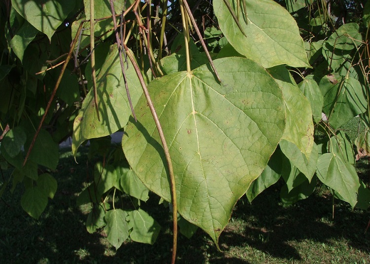 Catalpa bignonioides tra le diverse specie di catalpa sembra essere l’unica presente in città, fatta eccezione, naturalmente, per l’Orto Botanico. È una pianta molto ornamentale con le sue grandi foglie, i lunghi e sottili baccelli, la spettacolare fioritura. Tutti caratteri che la rendono facilmente identificabile. Il portamento è espanso e un po’ irregolare.