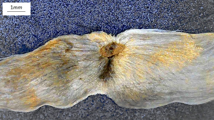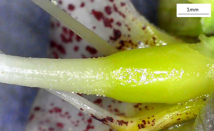 Un bell’esemplare al Parco d’Europa in SettembreLe grandi foglie della Catalpa bignonioides, il margine è liscio e regolare, la forma ricorda un cuore ma con un vertice alquanto pronunciato.Lunghe e sottili capsule che assomigliano a baccelli in una foto autunnale ai Giardini TrevesInizio estate.La capsula si apre longitudinalmente e all’interno ha un setto (una membrana divisoria) che determina due cavità,… …con dentro affastellati in bell’ordine miriadi di semi alati.Il piccolo seme incastonato fra le aliDritto e rovescio del seme.Infiorescenze in grandi e vistose pannocchieI lunghi peduncoli danno un aspetto arioso.Calice colorato di viola, si apre in due valve, come due labbraCuriosi boccioli con un mucrone in cima. Fiori bianchi screziati di rosso e giallo. I petali sono fusi fra loro alla base del fiore, solo in alto sembra si vogliano separare, la struttura del fiore (non solo quella esterna) è analoga a quello della Bignonia.Stigma ripiegato all’indietro con vistosa giuntura del carpelloStilo lungo che si innalza da un ovario fusiforme e verdolino, sembra suggerire la lunga capsula che verrà. In basso, nella foto, si intravede la parte terminale del filamento (maculato) che aderisce alla parete interna della corolla.L’antera ha due teche unite per la base, dove si attacca il filamento; sembrano alquanto indipendenti fra loro ogni teca si apre longitudinalmente lungo la sutura delle sacche polliniche.La corteccia marrone chiaro si fessura in scaglie che sembrano intrecciarsi in lunghi e sottili filamenti.