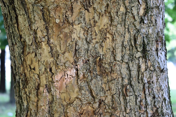 La chioma si apre ad ombrelloe il tronco robusto non si innalza molto da terra.Due esemplari piuttosto anziani vivono al Parco Milcovich Altre tre abitano il piccolo Giardino Romana Aponense; è stato proprio dal post al link precedente che son venuto a conoscenza della cultivar, ringrazio per questo il suo autore.Le foglie sono un po’ più piccole rispetto alla pianta madre, hanno lamina più consistente e venature molto più evidenziate.Anche la corteccia ha lo stesso colore, ma fessure più distanziate.