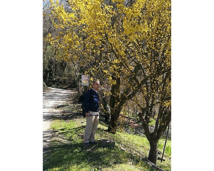 Le piante di corniolo si protendono su questo sentiero formando una volta naturale macchiata di giallo. La foto è presa nel tratto dell’Alta Via del Colli che corre lungo il versante est del Colle Baiamonte.Due vecchi cornioli sui Colli Euganei alla fine di febbraio.Splendida fioritura in un giardinetto presso la Basilica di Sant’Apollinare in Classe (Ravenna).