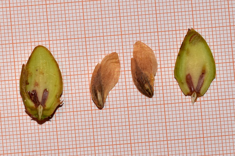 Si identifica agevolmente dall’osservazione dei frutti, coni inizialmente verdi poi gialli verso maggio giugno e finalmente brunodorati in settembre ottobre, in inverno seccano diventando marrone. A maturazione sollevando due ali lasciano cadere due semi alati.