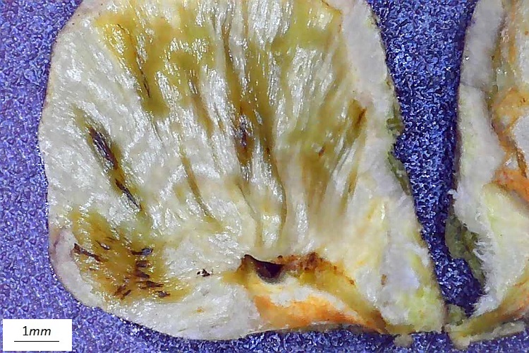 Fiore bisessuale, visibili antere e stami lungo il bordo esterno e lo stigma al centroLievi fratture in senso longitudinale e trasversale che determinano placche alquanto regolari di forma quasi perfettamente rettangolare.Forma che si mantiene anche negli esemplari anziani.