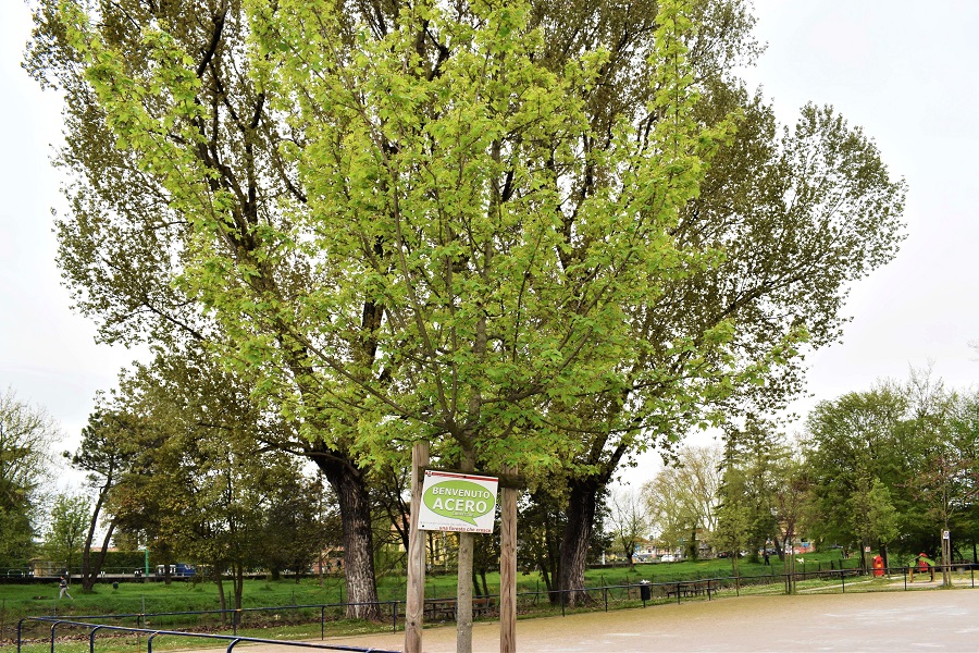 Notevoli piante di Acero campestre svettano al di sopra di un alto muro di cinta di un giardino privato in Via Santa Sofia. Sullo sfondo la chiesa trecentesca, una delle più antiche della città.Subitanea apparizione dal nuovo ponte pedonale che oltrepassando Via Venezia conduce al Giardino d’EuropaLo stesso albero in Estate e da un diverso punto di vistaGiardino Cavalleggeri, lungo il muro divisorio con l’ex Caserma Prandina aceri campestri e carpini rivaleggiano nelle loro livree autunnali.Al Giardino di Via OgnissantiFoglie e frutti in Ottobre