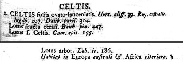 Ulmaceae Celtis australis L. Il nome fu imposto da Linneo nel celeberrimo Species Plantarum