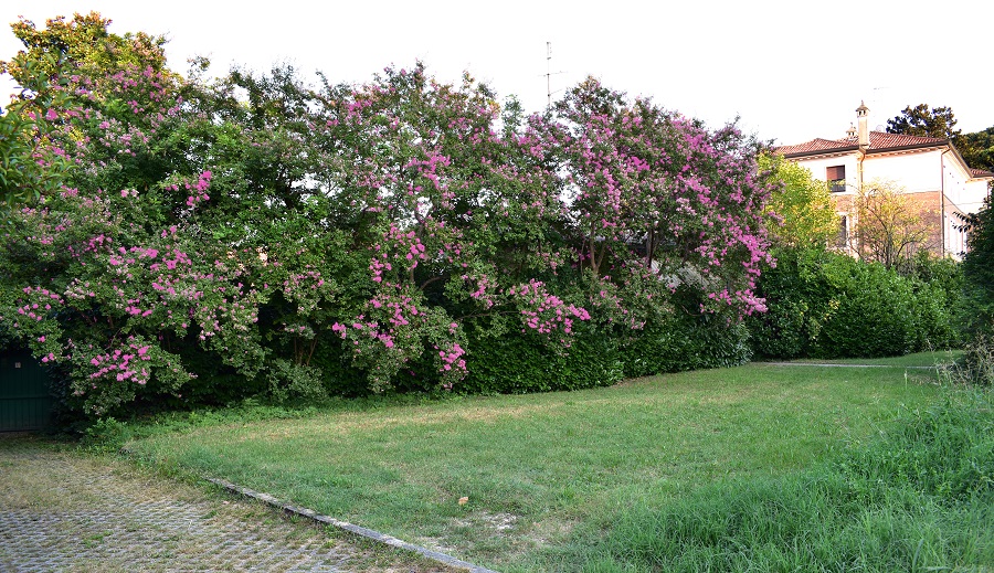 Esemplare fiorito in un giardino privato di Via CeratoUn lungo viale di lagerstroemia percorre tutta Via Duca degli Abruzzi.