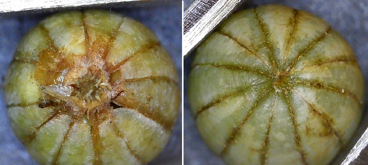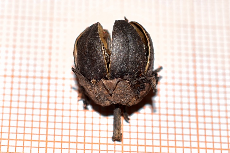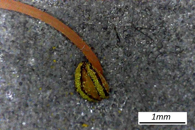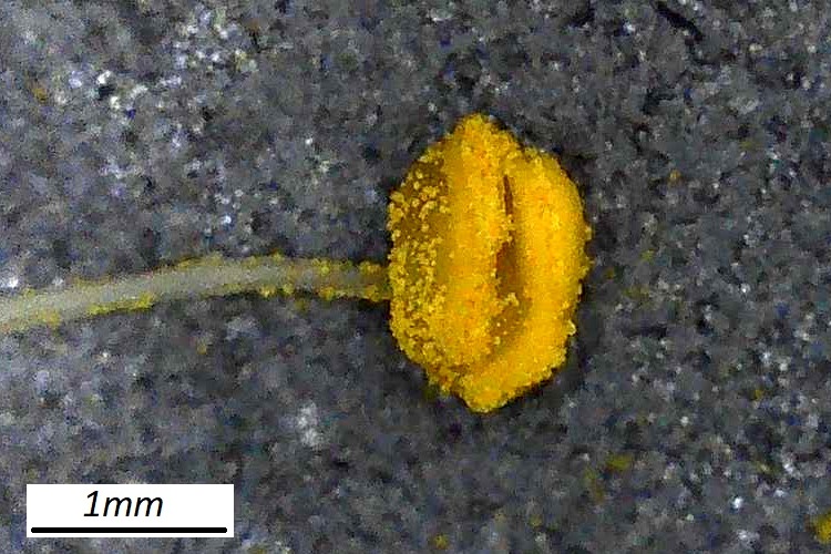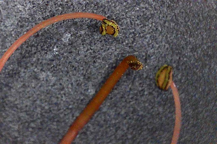 Un aspetto singolare del fiore è la presenza di due tipi di stami: un primo insieme con stami dalle antere gialle e filamenti corti, numerosissimi e assiepati fra loro; un secondo set con filamenti lunghissimi, antere scure e in numero di sei, come la simmetria del fiore.