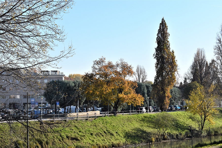 In un precedente post parlando di una splendida Paulonia che ornava Piazzale Boschetti e che tempo fa, a seguito di lavori di ristrutturazione del piazzale, era stata tagliata, si paventava, in vista dei lavori per il nuovo parco, una analoga fine per un bellissimo filare di Cupressus glabra. Una profezia fin troppo facile: lo hanno completamente estirpato. Ma non è bastato, sono state uccise tutte le piante che abitavano il tratto di canale prospiciente il piazzale!