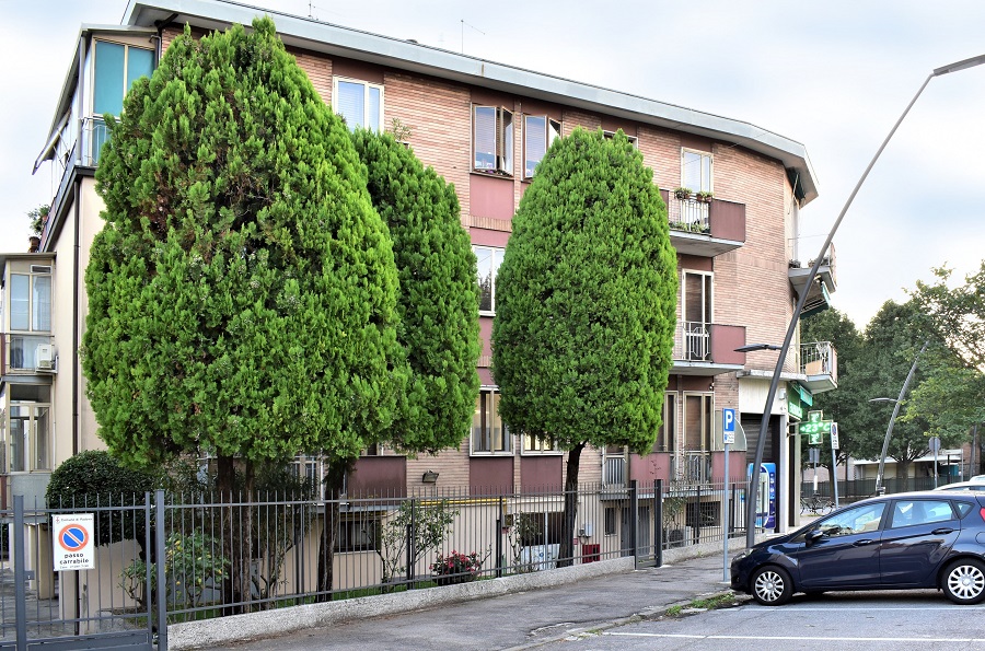 Una aiuola in Via Vescovado incrocio Via Vandelli (Piazza Duomo) Via Bon, in fondo uno scorcio di Via SografiUn giardino privato in Via AcquetteGruppo di Tuie in Via Cremona (Sacra famiglia)Thuja orientalis piramidalis nella vicina Via Aosta. Il portamento piramidale è ulteriormente accentuato dalla potatura: a certi giardinieri non basta mai…Via Marco Polo.L’entrata della Scuola Primaria Mantegna a San Carlo.