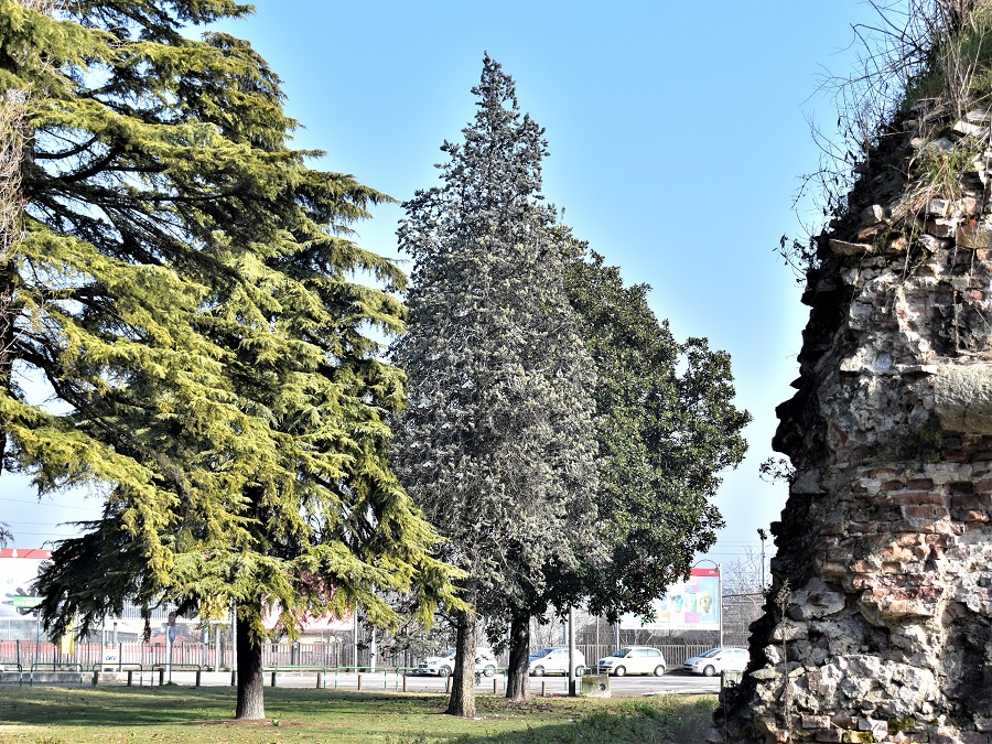 L’esemplare di Via Pio X presso il Parco PerlascaVia Manzoni presso Porta Santa Croce. A sinistra un filare di platani e in secondo piano un Cedro dell’AtlanteUn giardino privato in Via Piaggi dirimpetto all’entrata del Parco San Carlo; un sapiente gioco di sfumature di verdazzurro creato dall’alternanza di Magnolie e arizonicaIn molti giardini privati, spesso, questa specie è mancante della cima. Inutili i commenti… A destra uno scorcio del Baluardo Moro, al centro un luminoso arizonica fra un deodara e una magnolia.Scoletta del Carmine in Piazza Petrarca.Orto Botanico.