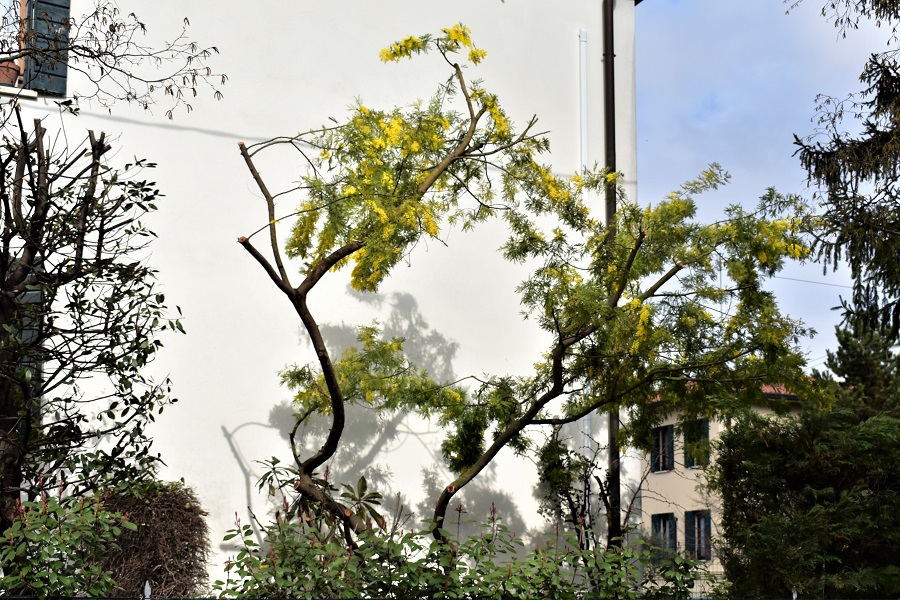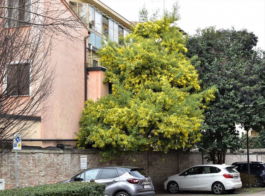 Un parcheggio condominiale in Via Paoli, continuazione di Via Cavalletto.La vicina Via Sant’Alberto Magno.Presso il Bastione Pontecorvo; il muretto segue il tracciato delle mura cinquecentesche. Oltre le villette corre Via Sanmicheli.Appena una settimana dopo, con un Mandorlo fiorito.Una laterale di Corso Vittorio Emanuele IIDopo due anni di amorevoli cure (almeno a giudicare dalle protezioni invernali attorno al tronco). Aggiornato il 6 Marzo 2021 Una pianta un po’ spennottata in una laterale di Via FacciolatiPiazzale Santa Croce. Anche qui la recinzione del giardino segue il percorso delle mura cinquecentesche.Imponente Mimosa all’entrata dell’Orto Botanico. Purtroppo di recente (estate 2022) l’ho vista alquanto ridimensionata, forse a causa di eventi atmosferici.