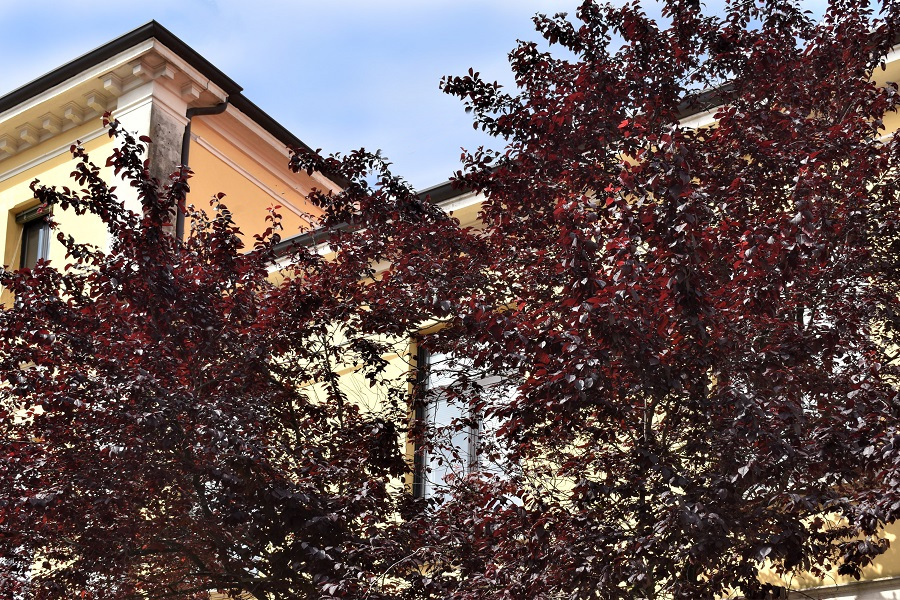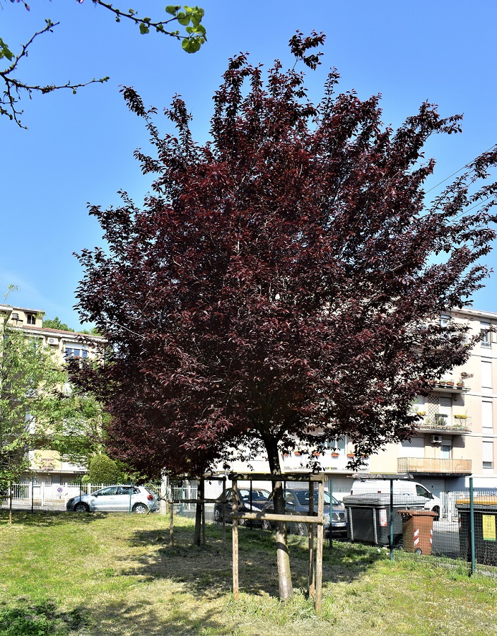 Un albero rosso stupisce sempre, e tale dev’essere stata la sensazione del giardiniere Pissard quando lo selezionò, pare casualmente, in Persia nel XIX secolo. L’Amolo di Pissard di dimensioni contenute e dal portamento espanso e aggraziato, si presta a spazi limitati: in città lo si trova, spesso a formare viali, nelle vie più piccole.