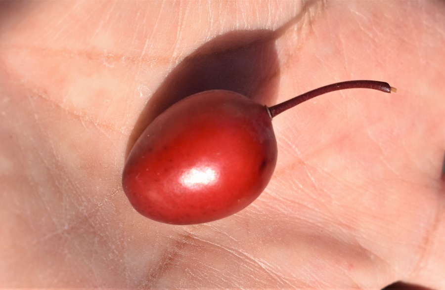 I frutti sono susine arrotondate di colore rosso vivo, che spuntano subito dopo i fiori e permangono sulla pianta per tutta l’estate.