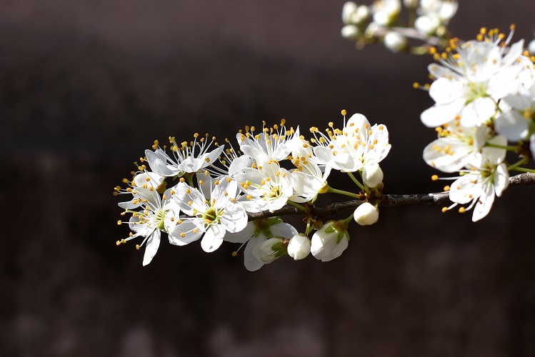 Il “gran pruno” potrebbe essere un rovo o biancospino, ma forse più probabilmente Prunus spinosa. In ogni caso anche se spinata, è questa una pianta gentile con fiori graziosissimi e frutti belli a vedersi.
