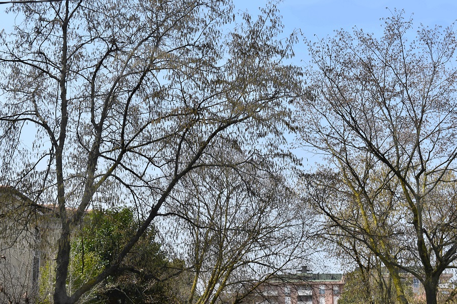 I fiori maschili sono amenti simili a quelli del Carpino bianco, ma molto più lunghi. I numerosi stami pelosetti sono protetti da una sorta di cupola bicolore.I fiori femminili, che condividono la stessa pianta con quelli maschili, sono anch’essi molto simili ai fiori del Carpino bianco.I fili violacei che emergono dalle brattee sono stigmi.Miriadi d’amenti con fiori ancora in bocciolo. Febbraio.Ondeggiar d’amenti in una ventosa giornata d’aprile.Anche la foglia è simile a quella del Carpino bianco,……ma guardando bene in prossimità del bordo si osservano piccole nervature supplementari che si staccano dalle nervature secondarie. Nulla del genere nel betulus.Tronco dritto e slanciato; corteccia grigia che si squama in placche sottili.Come abbiamo imparato questa specie ha molti caratteri comuni con Carpinus betulus, ma le cortecce sono molto diverse, e questo aiuta a non confondere le due piante. Invecchiando il colore vira al marrone e le placche si segmentano anche trasversalmente. Nella foto un vetusto esemplare nell’arboreto dell’Orto. Lui è l’albero più scuro al centro; il tronco chiaro è quello di un Pino. I giovani rami sono coperti di lenticelle.Il Carpino nero cresce alto e slanciato, ma nei boschi assume anche portamento arbustivo. Di questo comportamento ne approfittano i giardinieri per farne siepi, nella foto un giardino privato in Via Montello.Doppio filare in Via Perin, una laterale di Via Facciolati.Parco Milcovich in gennaio.Lezione di Dendrologia; Lungargine Piovego all’altezza del Ponte di Via Ariosto. La pianta al centro è un Bagolaro, l’eroe di questo post è sulla destra.