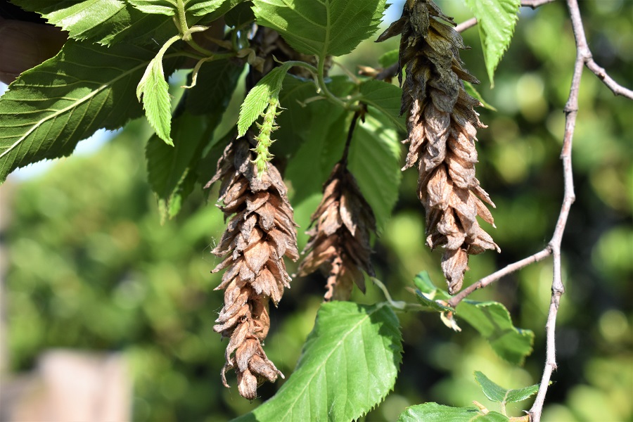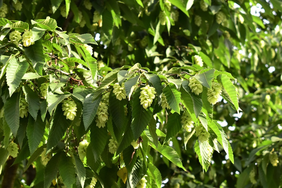 Il carattere peculiare, quello che permette una sicura identificazione, del Carpino nero, è l’infruttescenza: un grappolo pendulo simile a quello del Luppolo.