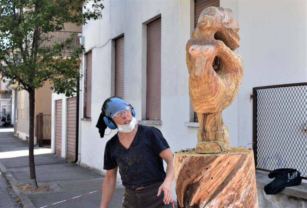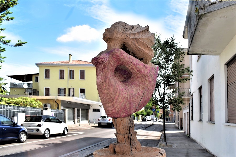 In città compaiono da qualche tempo sculture tratte da vecchi fusti di alberi. Meritoria iniziativa dell’Assessorato al Verde, che va sotto il nome di UrbArt. Una nuova opera, frutto di questo progetto, sorge ora all’angolo fra Via de’ Menabuoi e Via Selvatico, nei pressi del Parco Milcovich all’Arcella.