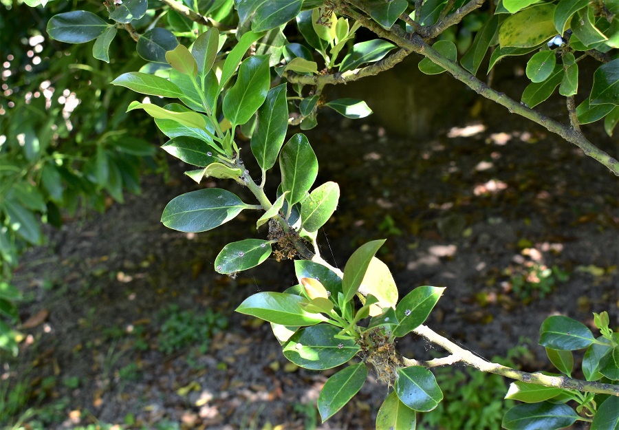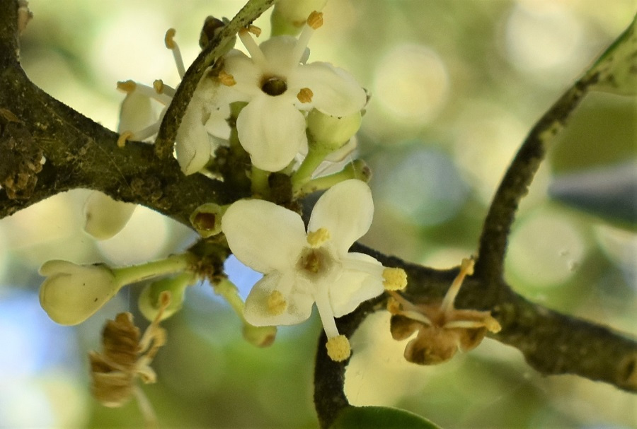 Ora c’era da mettere insieme tutte le informazioni sparse qui e là nell’archivio fotografico. Prima di tutto i fiori; e poi, perché non aveva frutti? Si trattava di una cultivar, magari sterile, o di una specie di Ilex a me sconosciuta?