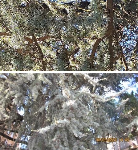 Cedro dell’Himalaya in Via Schiavone. (Foto e commento, Daniele)Aghi di Cedrus deodara. (Foto, Paula)Cedrus atlantica. Non pochi han confuso i due cedri fra loro, scambiandone i nomi. (Foto, Matteo)