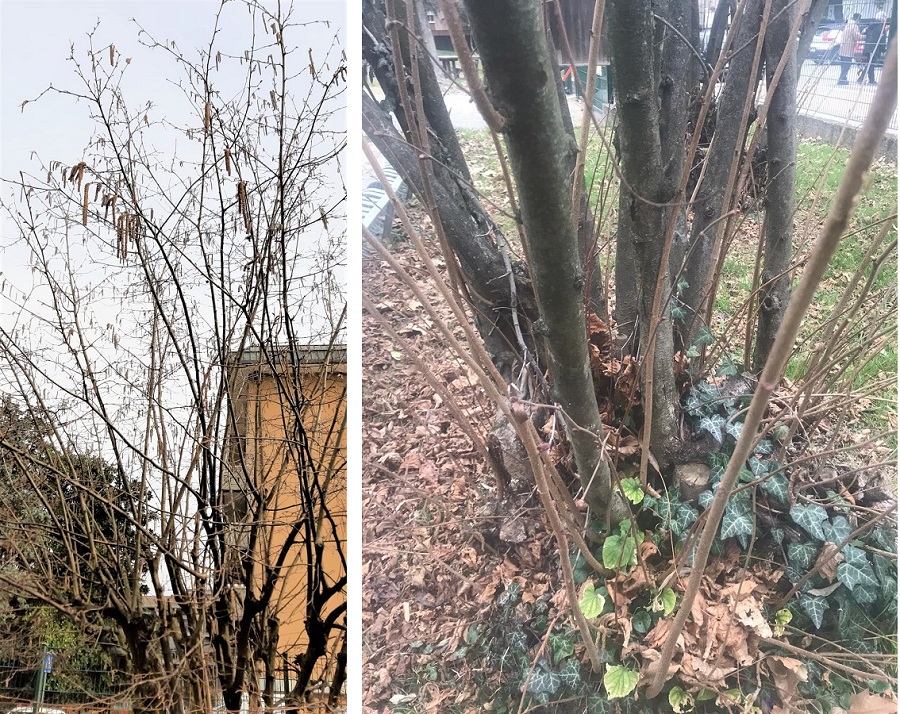 Infiorescenze ai piedi dell’albero di Nocciolo. Si trova vicino al nostro cortile di casa spesso vi troviamo delle nocciole per terra a fine estate inizio autunno.(Foto e commento, Chiara)
