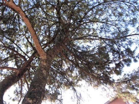Pino domestico, quartiere San Carlo. Ha gli aghi lunghi, presenza di pigne e aspetto della chioma e tronco simile a quello visto al parco Piaggi.(Foto e commento, Chiara)