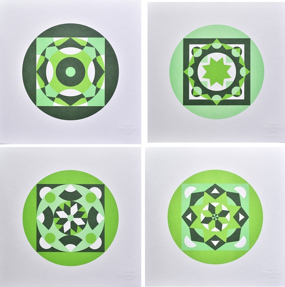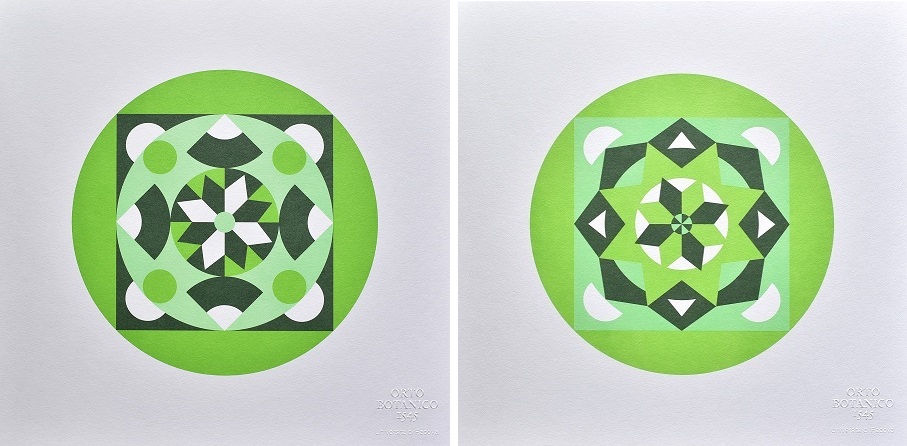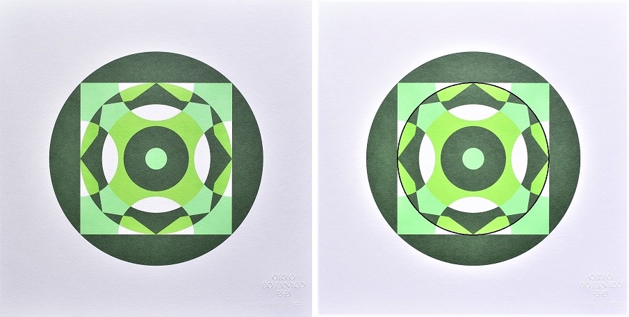 In questa sezione parleremo delle stampe regalate agli abbonati, stampe ispirate alle linee geometriche dell’Orto antico, fondamentalmente un gioco di cerchi inscritti in quadrati e viceversa.