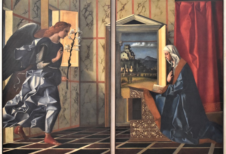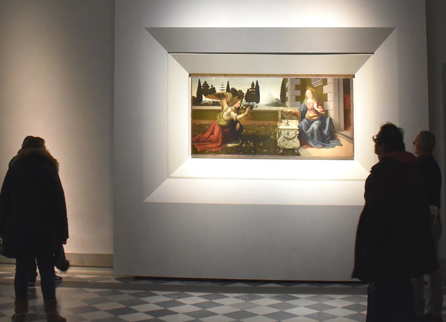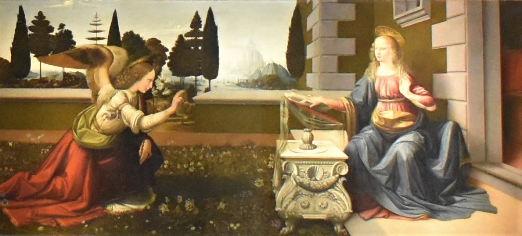 L’Annunciazione di Leonardo (1472) conservata agli Uffizi mi ha sempre affascinato, anche per la presenza sullo sfondo di numerosi alberi e di un ampio panorama, a differenza di molte opere sullo stesso tema che costringono gli attori della rappresentazione in spazi piuttosto angusti.