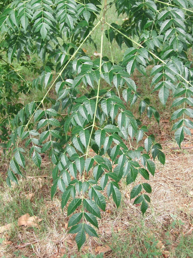 Foglia doppiamente pennata di notevoli dimensioni, la lunga rachide, compresa di picciolo, può agevolmente superare il mezzo metro. Ogni fogliolina è variamente dentataIn autunno le foglie diventano giallo smagliante.