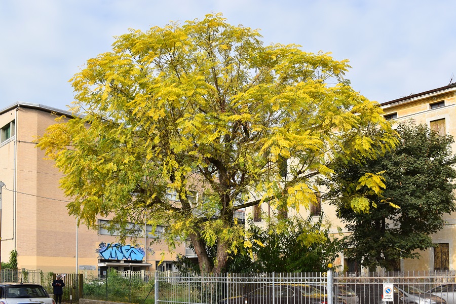 Le innumerevoli foglioline, differentemente orientate grazie alla doppia disposizione pennata, danno al Nostro un aspetto arioso. L’effetto è accentuato in autunno, quando il verde della chioma è inframezzato da macchie di colore giallo oro.