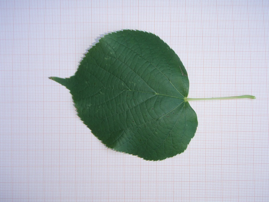 La base cordata e il vertice acuminato della foglia dicono con forza Tiglio selvatico. Anzi sembra che su questi caratteri l’artista abbia voluto calcare la mano, e la cosa, dopo quanto si è detto, non ci meraviglia più di tanto.