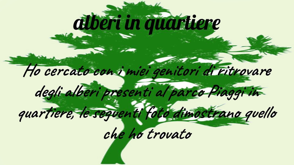 C’è sempre qualcuno che riesce a fare un lavoro accurato. Di seguito la presentazione di Elena, che oltre a documentare le specie nel Parco e nelle vie limitrofe ha il pregio di presentare le foto delle foglie per le diverse specie, in una sorta di erbario virtuale.