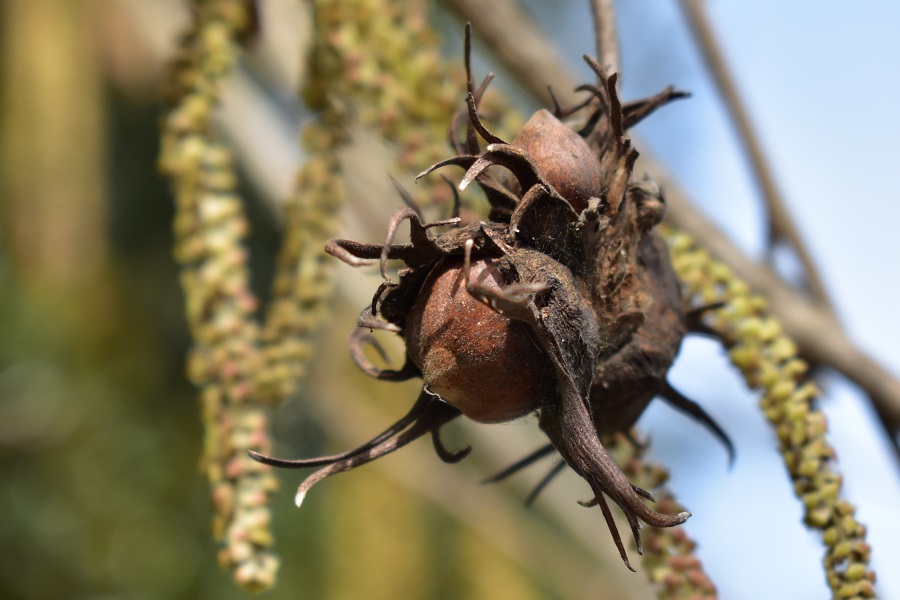 Corylus colurna è simile al cugino avellana, ma il portamento è decisamente arboreo potendo crescere ben oltre i 20 metri; l’albero ha forma conica particolarmente da giovane. Anche da adulto conserva una figura snella pur allargando un po’ la chioma, un bell’esempio lo abbiamo già incontrato lungo l’argine del Brenta fra Vigodarzere e la Certosa.