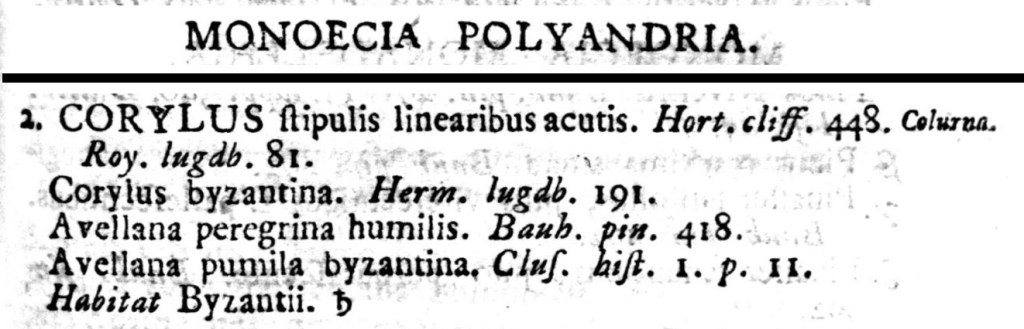 Corylaceae (Betulaceae) Corylus colurna L. Nome imposto da Linneo nel celeberrimo Species Plantarum, Stoccolma, 1753