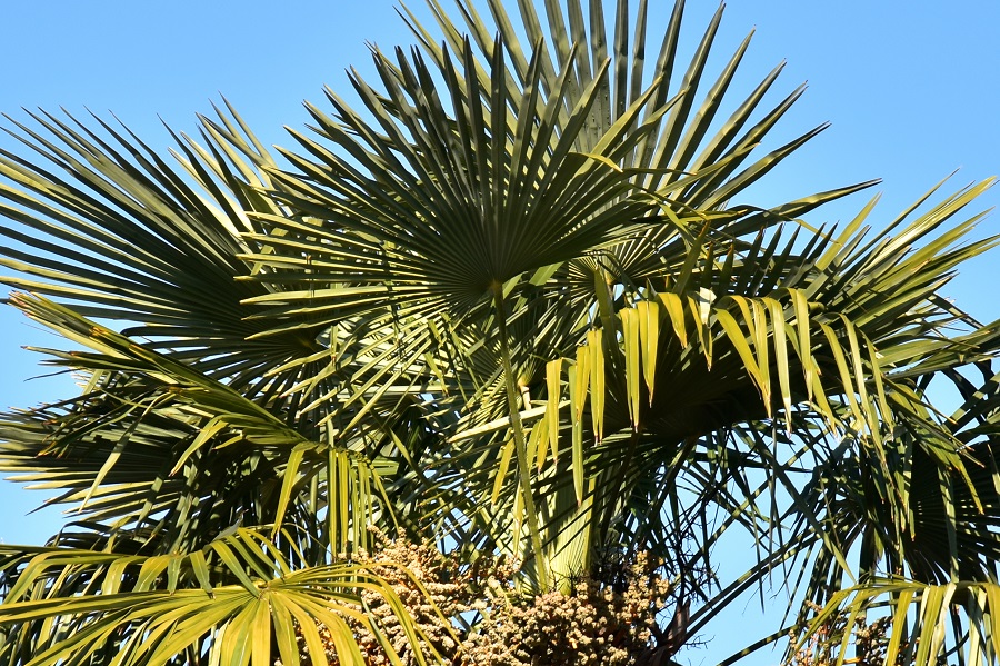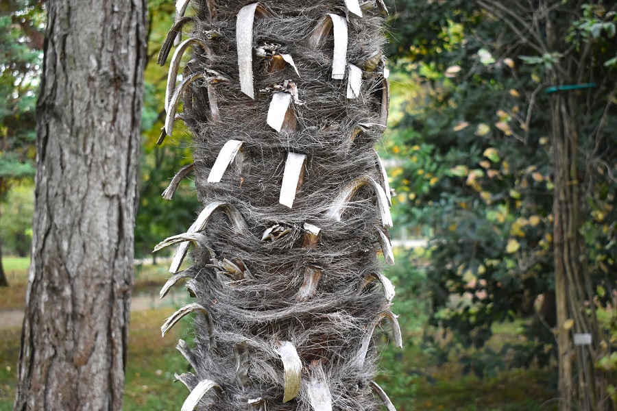 Trachycarpus fortunei è una delle poche palme che possano sopportare le rigide temperature invernali, e ciò basterebbe per attrarre l’attenzione dei giardinieri alle nostre latitudini. Ma la pianta è anche molto elegante, e cresce in fretta, così ha finito col diventare popolarissima, sicché la città ne è piena.