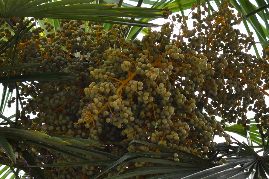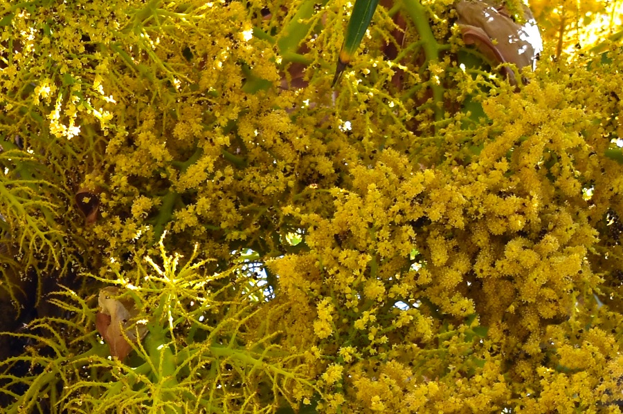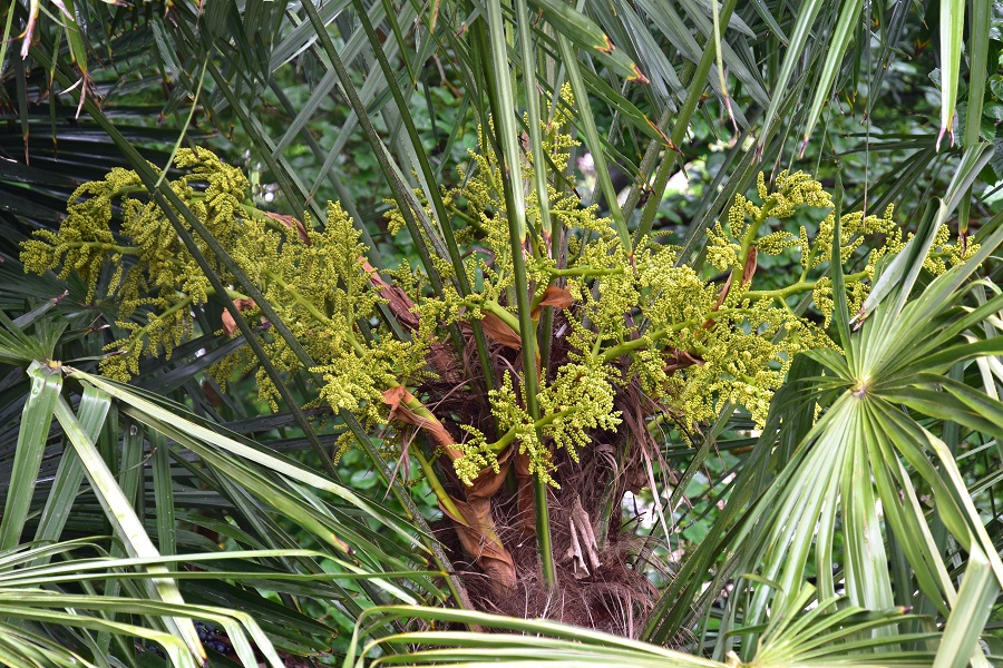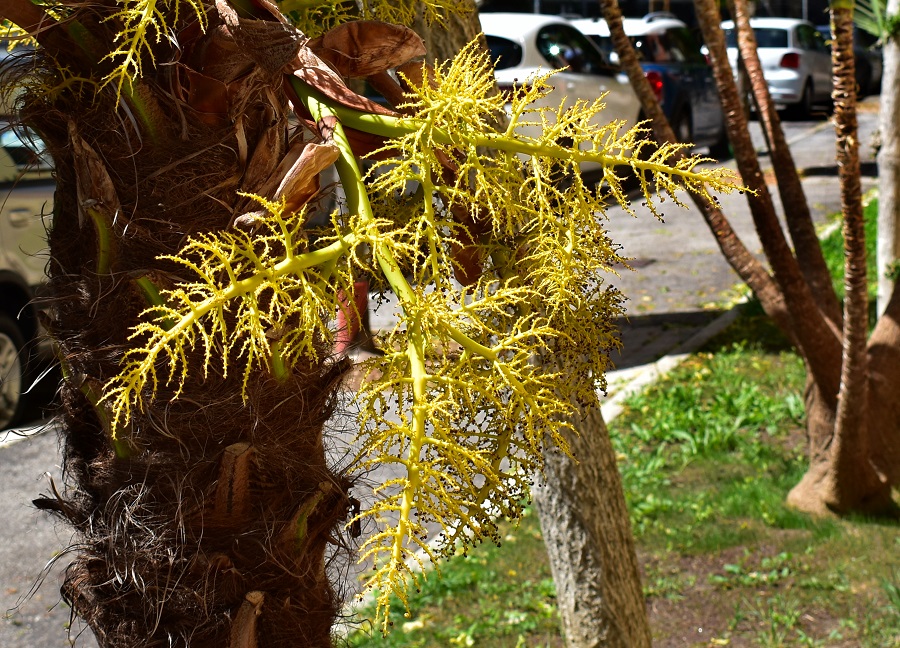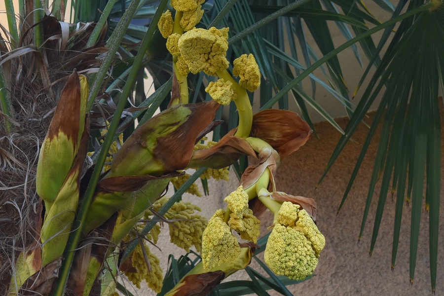 In alcune delle foto precedenti abbiamo visto la pianta fiorita, per l’esattezza maschi fioriti. Il fenomeno è imponente, infiorescenze in grandi strutture a grappolo visibili da molto distante.