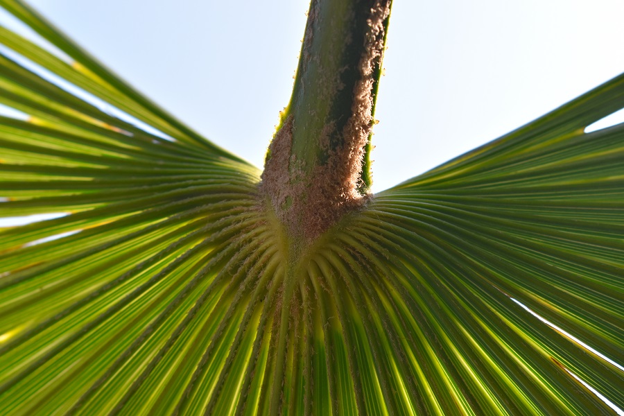 Fenologia minima: Fioritura e fruttificazione.Areale di origine (native range): Cina meridionale e regione settentrionale della Penisola indocinese.Via Volturno, uno scorcio sulle Mura Cinquecentesche e il Campanile di San BenedettoCanale di Santa Chiara. Foto da Riviera Businello, un giovane maschio fiorito in aprile.Un gruppo di Trachycarpus in Passeggiata Lazzari, all’altezza del Liceo Cornaro.Piazza Caduti della Resistenza. La Piazza recentemente restaurata è stata adornata con molte palme per ‘ richiamare l’ architettura Liberty del periodo di fondazione’. A volte le amministrazioni danno l’impressione di essere dissociate: si spendono soldi ed energie per cambiare nome ad un posto e poi altri Enti si comportano come se nulla fosse. In questo caso, la municipalizzata dei bus cittadini che intesta la corsa ancora col vecchio nome della piazza (Piazza Toselli). Di recente (Novembre 2022) ho visto su un autobus l’intestazione scritta correttamente; forse han cambiato in occasione dei nuovi orari invernali.Gli splendidi esemplari che ornano l’edificio dei Missionari Comboniani, Missioni Africane, in Via San Giovanni da Verdara. Non vi fate ingannare, questa pianta è di origine cinese… Incredibile doppio filare di fortunei a mo’ di recinzione. Argine Canale Scaricatore, nei pressi del Ponte di San Gregorio.Un gruppo di dodici Trachycarpus scandisce lo spazio di un orologio simbolico al Parco Sgaravatti (Parco dei Faggi). Splendido esemplare in OrtoFoglia a forma di ventaglio più o meno semicircolare; numerosissimi lobi dritti e sottili saldati fino a circa metà lamina. Il picciolo è molto lungo e privo di spine,……e non penetra nella lamina fogliare.Pagina inferiore. Art Nouveau.