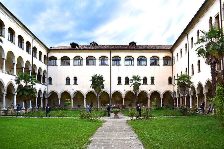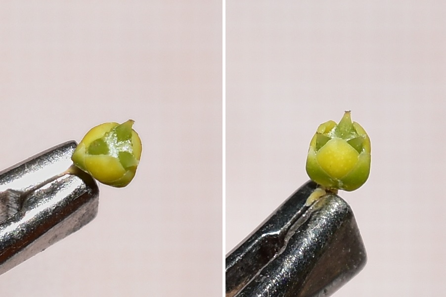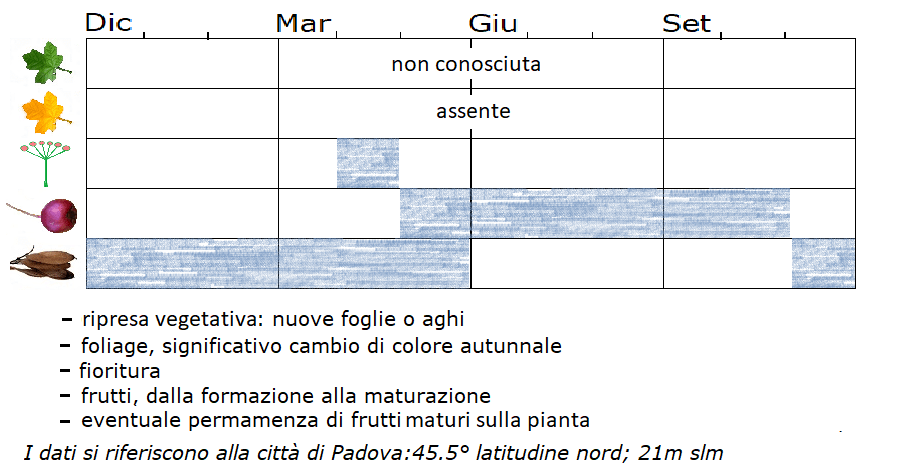 Miriadi di boccioli……e poi di fiori giallissimi.Sei stami con antere doppie. Le corolle all’apertura sembrano gusci sferici trivalve.I fiori sono contenuti in capsule giallo verdastre.Foto a suo modo impressionante, che rende bene l’idea di pianta primordiale.Assolto il compito della fioritura, rimane lo scheletro del grappolo, quasi un frattale…La pianta è dioica (fiori maschili e femminili su alberi separati). Due esemplari al Giardino dei Caduti della Resistenza, il maschio è riconoscibile immediatamente. Al momento non sono in grado di documentare adeguatamente i fiori femminili, ma nutro speranze per il prossimo aprile… Ne è valsa la pena aspettare (Foto del Maggio 2021). L’infiorescenza femminile ripete nella forma quella maschile, con i fiori che però virano al verde. Elemento base della struttura infiorescenziale. I singoli fiori sono sferici ma aprendosi assumono una simmetria ternaria.Tre petali gialli e altrettanti sepali verdino. Ma la vera curiosità sono i tre pistilli tozzi e verde smeraldo.Le due piante al Giardino dei caduti della resistenza in gennaio, con la femmina recante i frutti.Frutti reniformi, verdastri in estate, viola a maturazione. Aprile. È passato un anno dalla fioritura. I frutti permangono tanto sulla pianta, e prima di avvizzire virano decisamente al nero.Qui siamo già in settembre dell’anno dopo.Le foglie si staccano naturalmente lasciando un moncone bianchiccio. Un vello di fibre grigiastre ricopre la corteccia per lungo tempo,……poi, con gli anni, diventa così; e sembra la pelle di una pianta diversa. Giardino privato in Riviera Mussato, in alto la lanterna del Duomo.Uno dei chiostri interni del Convento di Santa GiustinaVia SografiVialetto interno all’Orto Botanico.