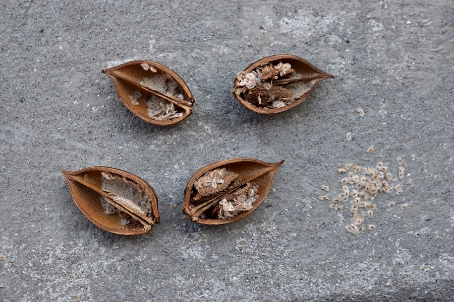 Dai fiori nascono frutti caratteristici: grosse capsule che si aprono in due e sono stracolme di leggerissimi semini alati, uno spettacolo a dir poco singolare.