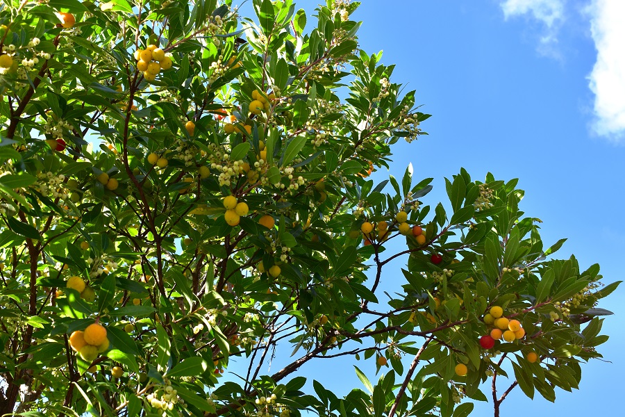 Novembre, si chiude il ciclo dei frutti, che maturano assumendo tutte le gradazioni dal giallo al rosso, e contemporaneamente inizia la fioritura. Sulla pianta permane per tutto l’inverno il bianco dei fiori, il rosso dei frutti e il verde delle foglie, circostanza che le conferisce un grazioso carattere patriottico.
