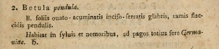 Betulaceae Betula pendula Roth Il nome fu imposto dal botanico tedesco Albrecht W. Roth a pagina 403 del primo tomo di Tentamen florae germanicae, Lipsia, 1788.