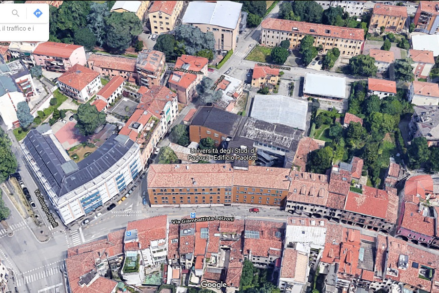 Il Carcere dei Paolotti, all’incrocio fra Via Belzoni e Via Paolotti, proprio dove ora sorge uno dei tanti edifici dell’Università. (Fonte della foto) Il complesso attuale occupa l’area del vecchio Convento dei frati di San Francesco di Paola. La chiesa, dopo il sequestro nel periodo napoleonico, era stata trasformata in carcere. Da qui passarono tanti martiri della resistenza padovana: Luigi Pierobon, Francesco Sabatucci, Flavio Busonera, Mario Todesco, Silvio Trentin. (Foto GoogleMaps) L’entrata da Via Paolotti ospita un grande Alloro e un Tiglio della Mongolia, quest’ultimo una vera rarità per Padova La foglia doppiamente dentata, quasi dei lobi, è unica nel genere Tilia.I fiori sono molto simili per aspetto e profumo a quelli delle specie platyphyllos e cordata.Il vecchio Istituto di Pena, divenuto poi carcere femminile, fu protagonista di un episodio di resistenza cittadina quando il 18 Ottobre 1944 un assalto dei GAP (Gruppi di Azione Partigiana) liberò le partigiane detenute. Il volantino che rivendica l’azione è custodito nell’Archivio CASREC.