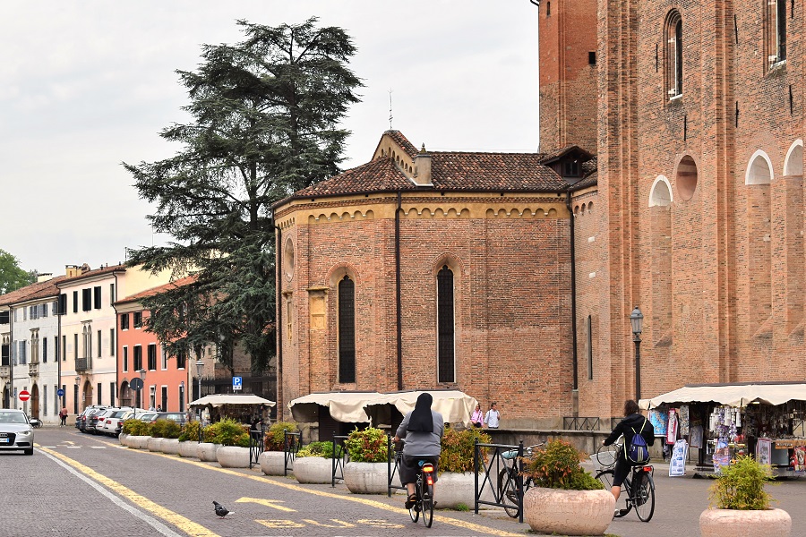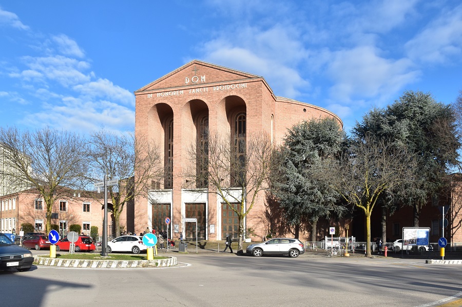 La grande Magnolia bianca dell’omonimo chiostro, in giugno fiorita. Lei c’era, e chissa quante cose ha visto…Cedrus deodara Pendula visto da Vicolo Santonini.Pietra d’Inciampo alla memoria di quest’uomo giusto. Attirato all’esterno della Basilica da due infiltrati fu catturato e portato immediatamente in auto a Trieste, e qui interrogato alla maniere dei tedeschi occupanti, cioè torturato e vessato fino alla morte. Nulla si sa delle sue spoglie; pare cremato nella Risiera di San Saba.Forse i due cedri dell’Atlante che dall’abside della Basilica si affacciano su Via Cesarotti hanno assistito impotenti al rapimento, l’auto dovette dirigersi verso il Portello per uscire dalla città.