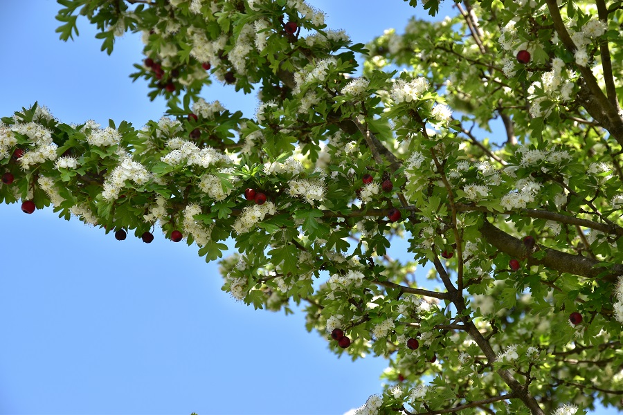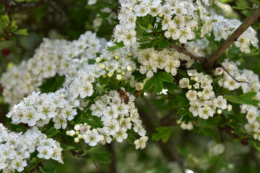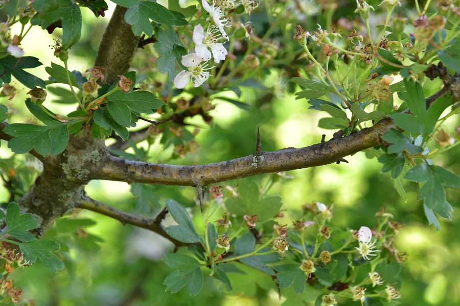 La specie fiorisce già in aprile, con buona pace del ‘mese mariano’; ma ormai tutto anticipa. Molti credono invece che la fioritura sia all’inizio della primavera, confondendo probabilmente il Biancospino con il Prugnolo (Prunus spinosa), che in realtà mette i fiori prima delle foglie, mentre il Nostro lo fa dopo.