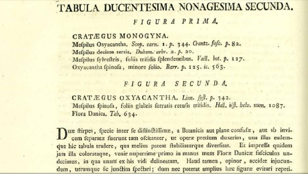 La pagina in predicato. La vicenda è complicata poiché grande era la confusione sui biancospini. Il Jacquin diede un contributo importante isolando il monogyna dalle altre specie e in particolare dall’oxycanta (una eredità di Linneo) che a metà dello scorso secolo (praticamente ieri) fu riconosciuto come un synonimo di C. rhipidophylla.