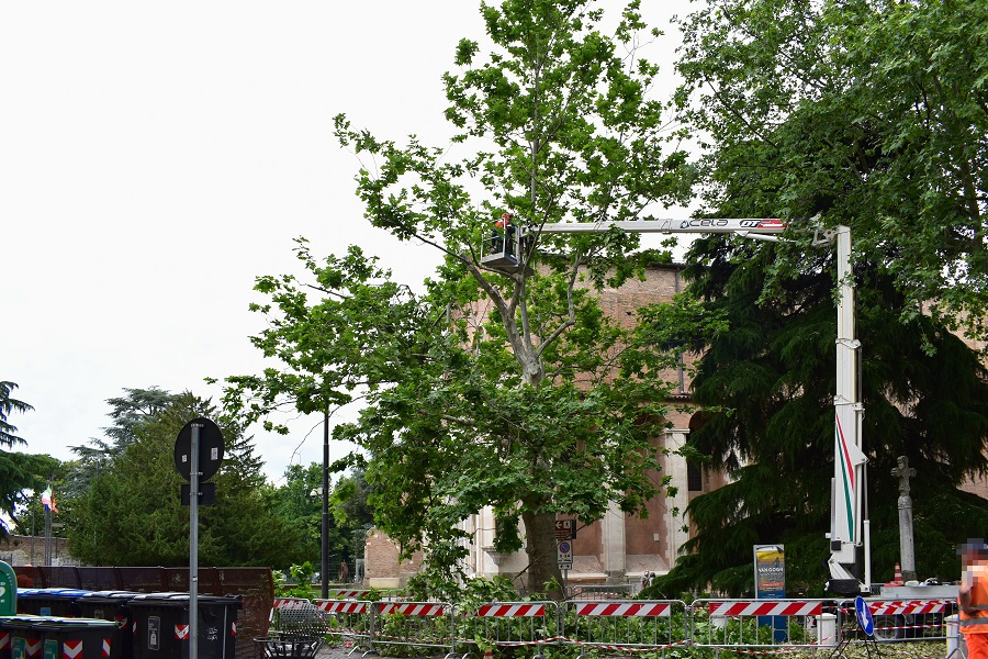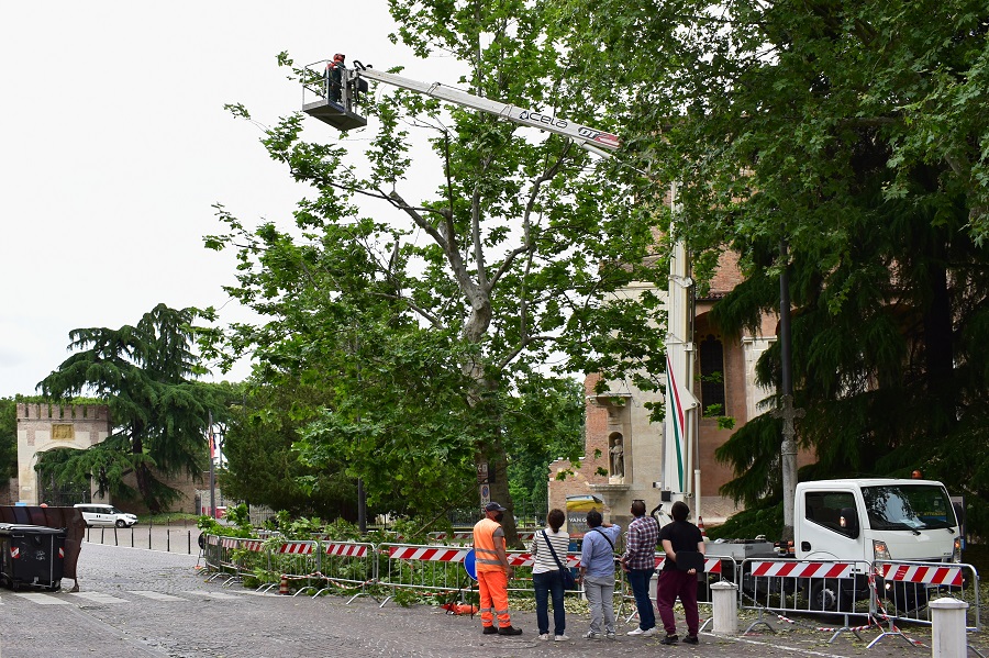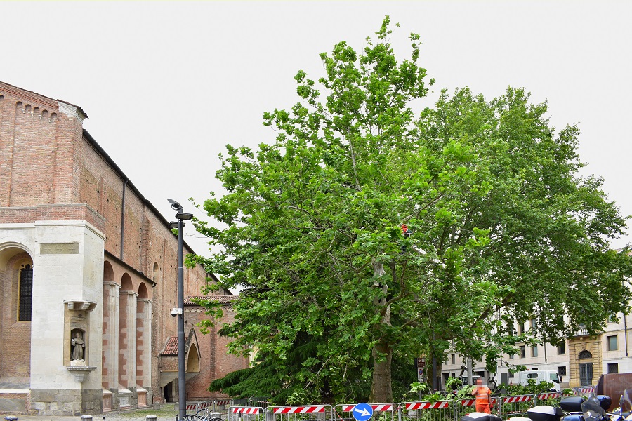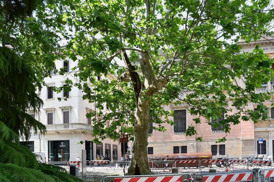 Capita girando per la città di imbattersi in squadre di uomini indaffarati attorno ad uno o più alberi, e allora il cuore si stringe al pensiero di un abbattimento o di una potatura pesante. Qualche giorno fa in Piazza Eremitani ho fatto un simile incontro. Ma devo ricominciare daccapo, altrimenti non mi faccio capire. Il giorno 5 di questo mese ero passato per la Piazza ed avevo notato le transenne attorno ad un platano a me ben noto per una cavità alla base del tronco.