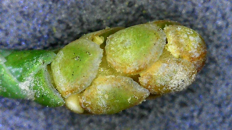 Un altro carattere distintivo è il frutto, una sferetta azzurrognola a maturazione e verde acqua da giovane. Anche se in verità sarebbe più corretto parlare di cono o meglio di galbulo.