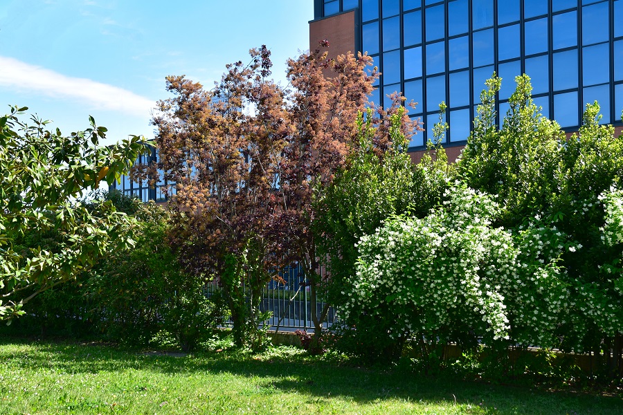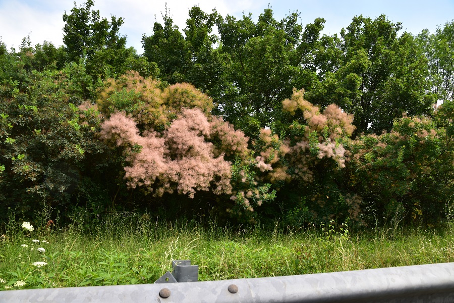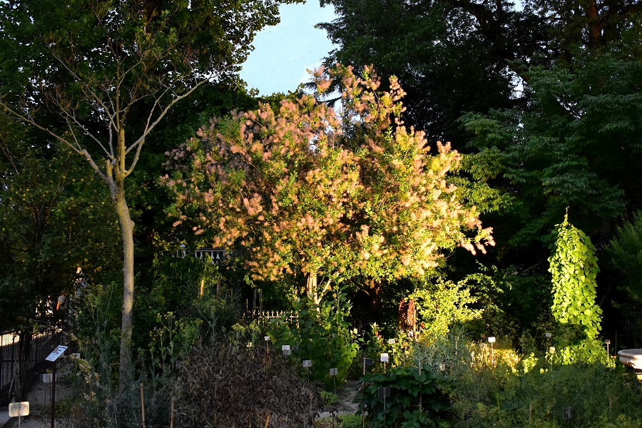 Una aiuola dello svincolo di Via Friburgo. Verdi rametti emergono dalla ‘nebbia’; in secondo piano giovani platani.Fiorisce fra aprile-maggio in grandi pannocchie di piccolissimi fiori. Nella foto, in Orto ai primi di maggio. Lo stesso esemplare alla fine di maggio con infruttescenze. Visione notturna. Fine giugno.Ma anche le foglie sono attraenti. Forma quasi perfettamente ellittica, picciolo dritto e proporzionato alla lamina, venature discretamente marcate; le secondarie si diramano pressoché perpendicolarmente alla principale e quelle di ordine inferiore si aprono a ventaglio. Bordo intero. Queste incredibili foglie in autunno si tingono di arancione e poi di rosso.NovembreFoglie alterne a fillotassi complicata, viste dall’alto sembrano disposte a verticillo…Molti giardinieri preferiscono le cultivar di questa specie, che sono numerose. Nella foto C. coggygria Purpurea.Fiori piccolissimi con cinque petali verdognoli e altrettanti sepali un po’ più scuri. Anche gli stami sono cinque e sorgono ai bordo di un dischetto madido di nettare.I più sono sterili, mancando del pistillo al centro, e cadono subito. Nella foto il fiore del purpurea.I fioretti sono collocati ai vertici di strutture aperte e diradate Grappoli di grappoli cioè pannocchie.Quando i fiori cadono e, dai pochi fiori fecondati, si formano i frutti, allora sono i rametti che assumono l’incarico di far diventare l’albero nebbioso: immediatamente si ricoprono di una fitta peluria.Frutto: piccolissima drupa schiacciata. Dapprima verdastra poi nera. Nella foto si vedono ancora i sepali verdino e i petali ormai rinsecchiti. Corteccia grigiomarrone, si screpola in piccole scaglie superficiali con bordi smussati. Alquanto distanziate fra loro.Lezione di dendrologia ai Giardini del Castello Trauttmansdorff (Merano).Giardino privato poco lontano da Via PalestroNovembre. Un giardino privato lungo il Parco del Brenta a Pontevigodarzere.Parco Europa, una siepe ricca di preziosi arbusti lungo il lato orientale. A destra del Cotinus Purpurea si distingue un Philadelphus fiorito.Giardino Santa Rita.