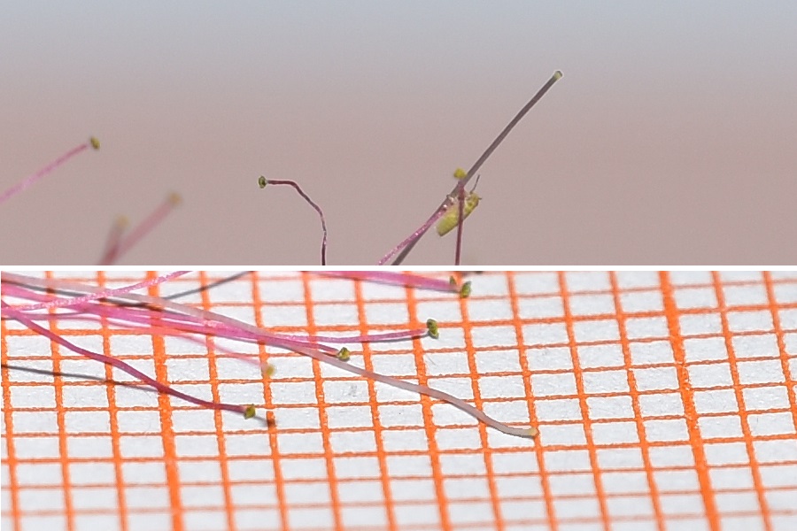 Nella foto si vede bene la parte a capolino dell’infiorescenza: i singoli fiori hanno i loro peduncoli, cortissimi, attaccati ad una ingrossatura del rametto (ricettacolo).