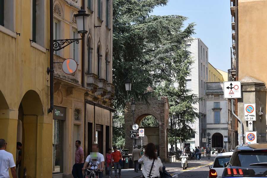 Imbocchiamo Porta Altinate, in epoca romana la via verso il Veneto Orientale e il Friuli, giriamo subito a destra e ci avviamo sotto nuovi e vecchi portici lungo Riviera dei Ponti Romani, risalendo il tracciato del Naviglio Interno.